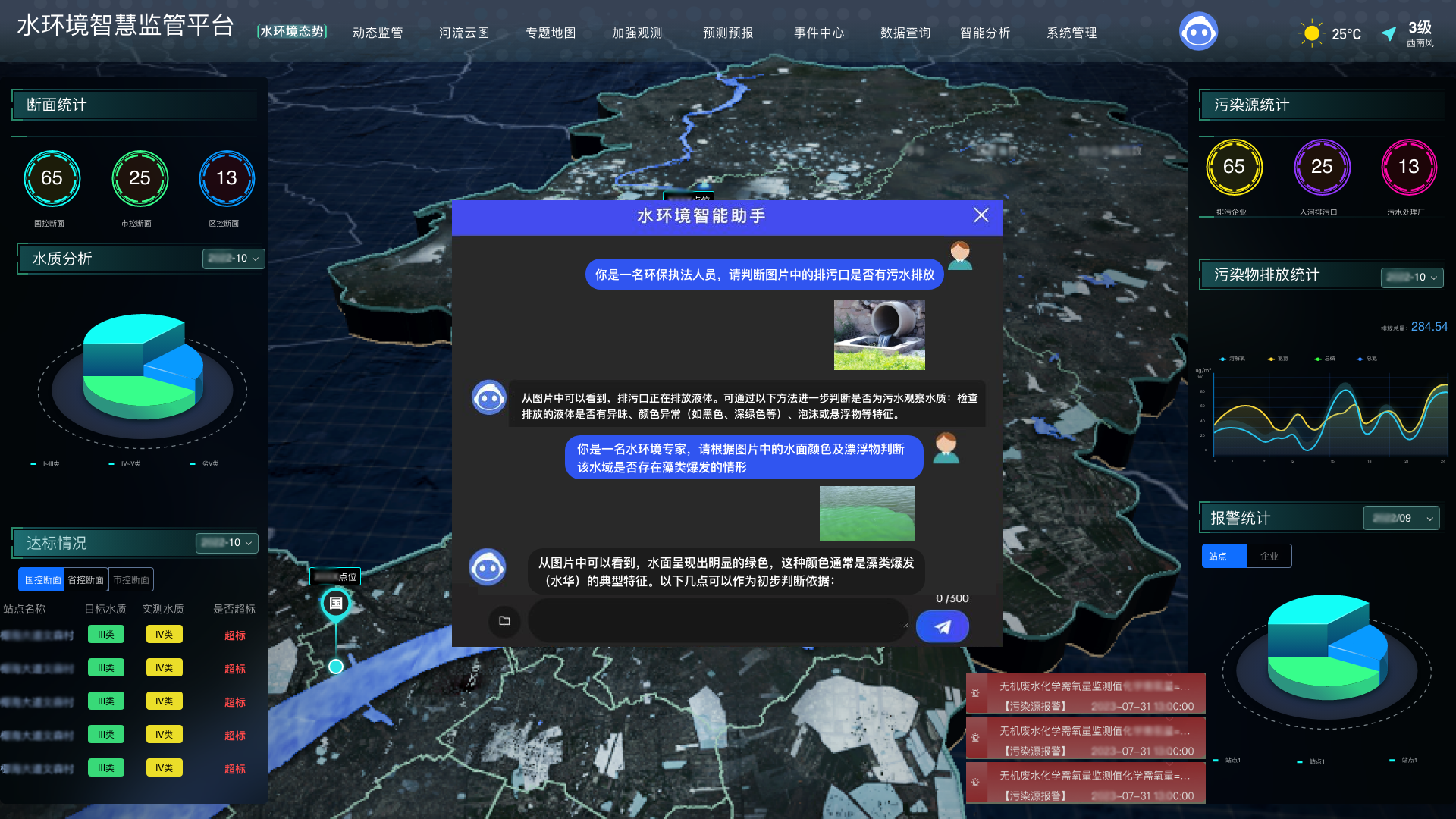 平台融合多种大模型工具,借助其强大的自然语言处理及数据分析能力,在水质监控、污染溯源、风险预警、环境评估等方面实现智慧赋能。模型支持丰富的智能问答,可秒查“环保法典”,辅助开展数据分析与报告编制,实现水环境管理的动态、高效、精准。